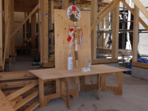 先日組み立てた御幣をセッティングして、お施主様とこれからの安全・繁栄を祈願します。